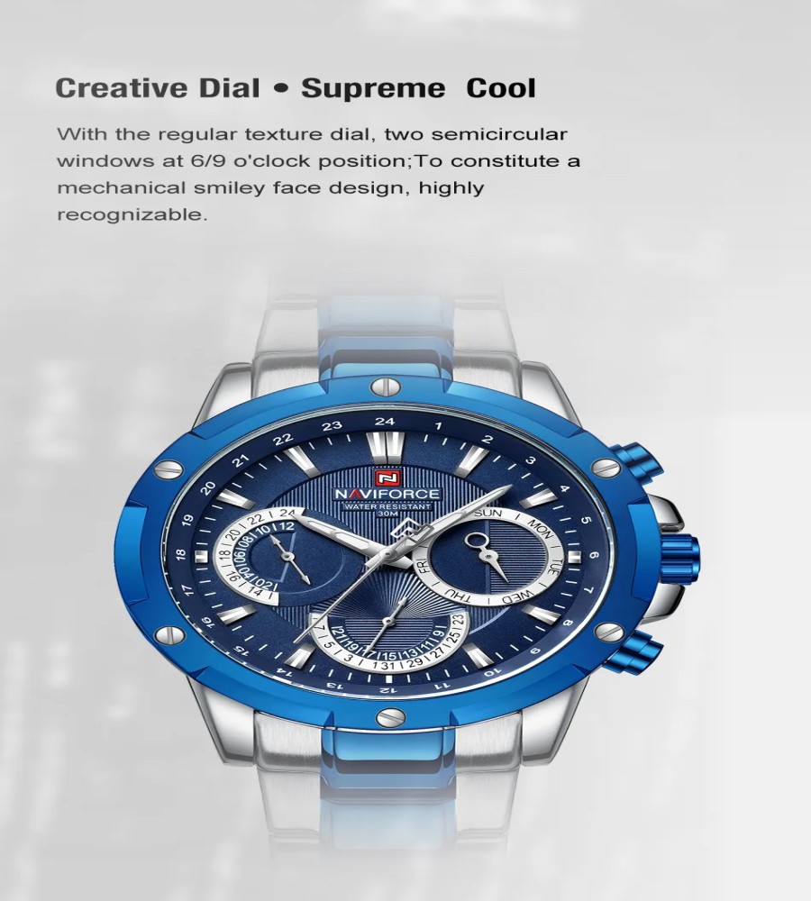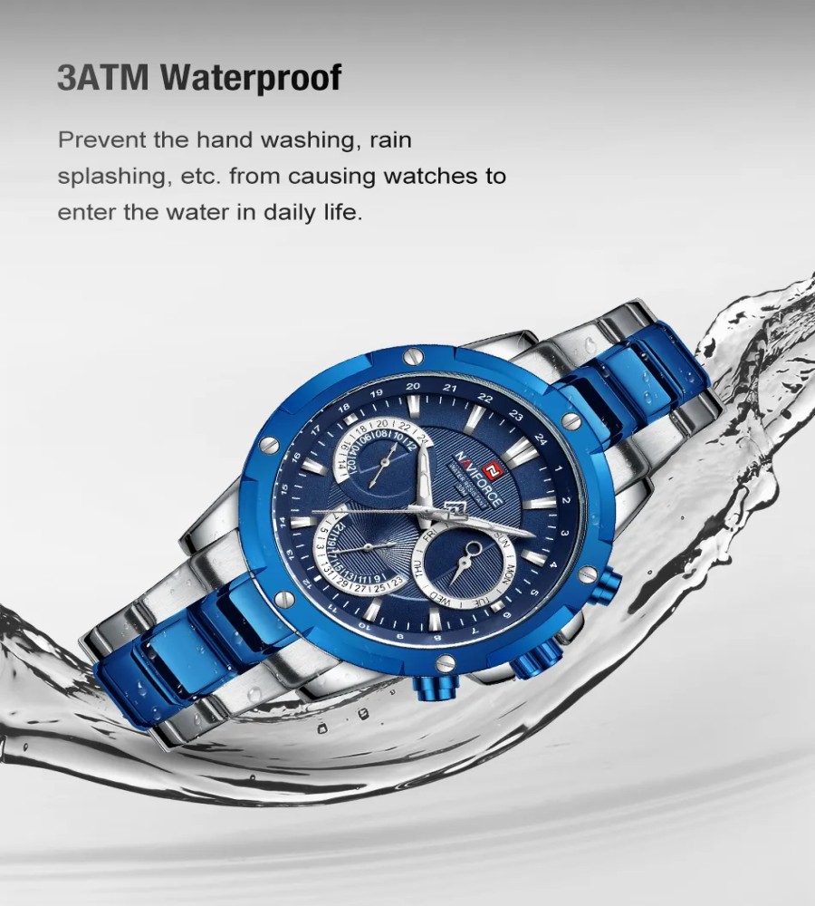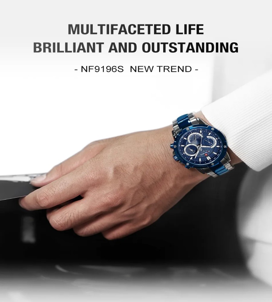 The Naviforce NF9196 is a fashion and cool men’s sports wrist watch, which adopts advanced quartz movement to display date, week and time on the round dial. Besides, it is equiped with stainless steel watch band for comfortable to wear. With 30m waterproof and easy to use, it is really a wonderful men’s sports quartz watch for choice. Naviforce NF 9196 is a well-designed and good looking wristwatch for the youth indeed. In truth, It’s an eye-catching model that usually makes someone presentable. If someone searching for the best quality watches for men, then NAVIFORCE 9196 might be the be the best model.