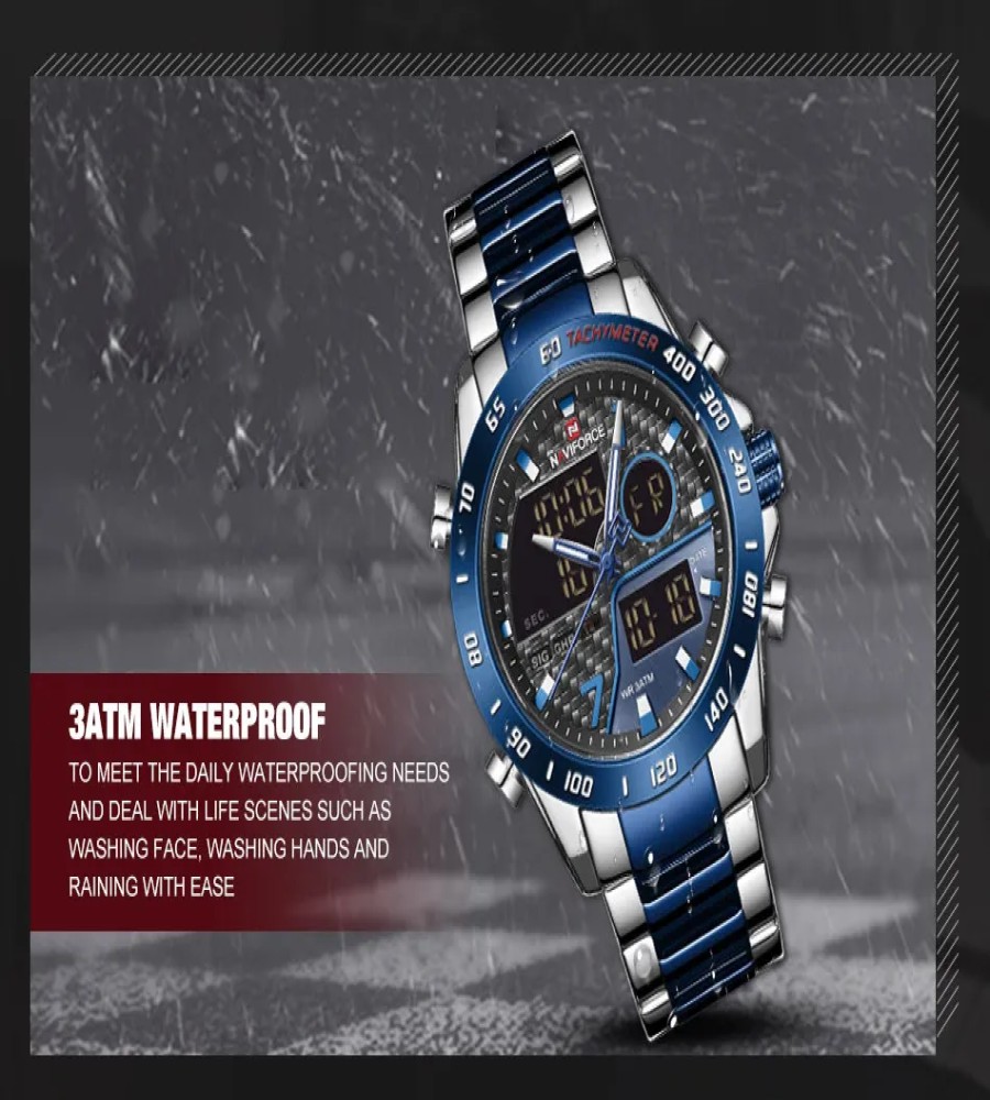 Gents NAVIFORCE Japanese Movement Stainless Steel Buckle Analog Quartz + LCD Digital Watch