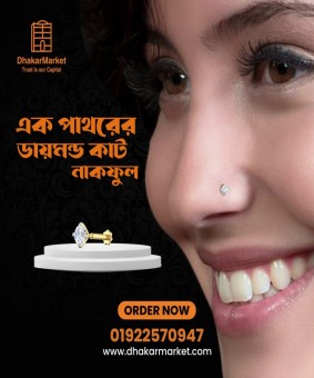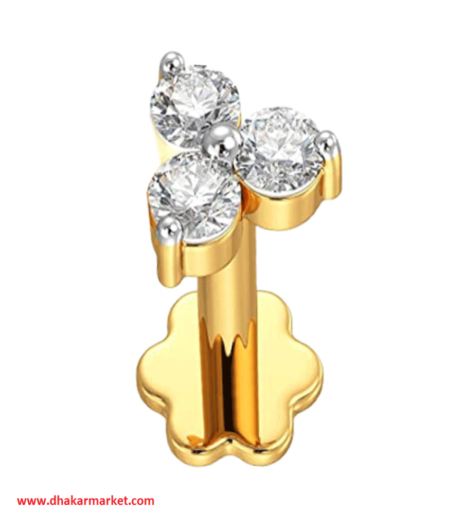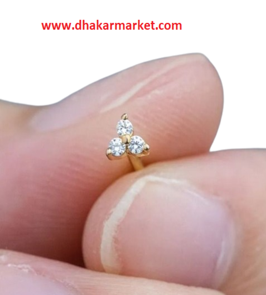 পণ্যের নাম: Three Stone Diamond Cut Nose Pin (ডায়মন্ড কাট নাকফুল)